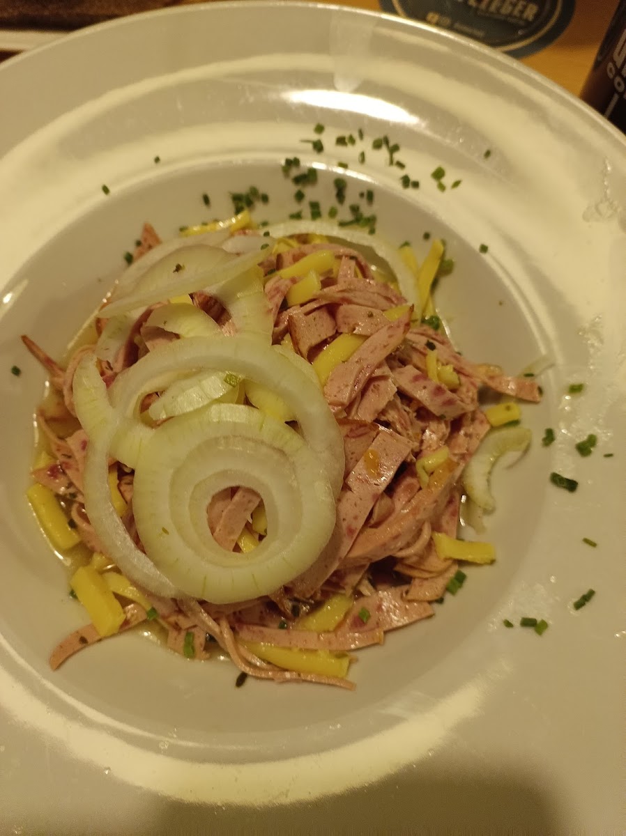 If you're craving a savory beef dish, the Zwiebelrostbraten mit Spätzle is a must-try. This flavorful roast beef, accompanied by traditional spätzle (soft egg noodles), is perfect for those who appreciate tender, juicy meat. For steak lovers, the Herrliches Rumpsteak mit Pommes und Salat is a standout choice-succulent rump steak served with crispy fries and a fresh salad, making for a satisfying and filling meal.